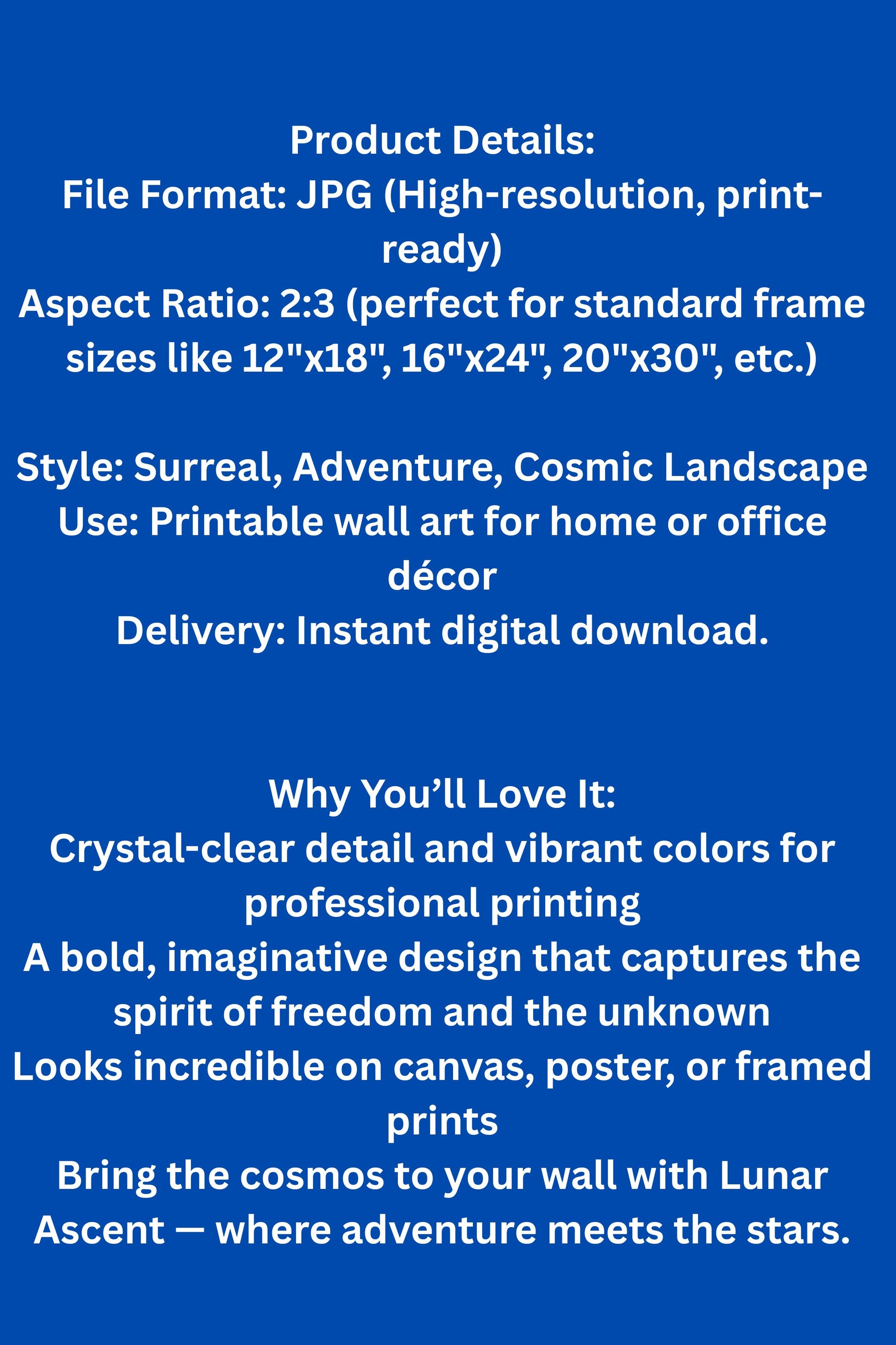 Transform your space with Lunar Ascent, a stunning high-resolution JPG digital art file designed in a 2:3 aspect ratio—perfect for modern wall decor.
